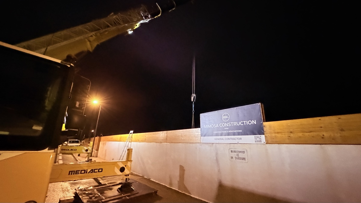 Aux premières lueurs du jour, le résultat est là. La grue à tour se dresse fièrement au-dessus du chantier du Boulevard de la Garoupe, sa flèche découpant le ciel bleu pré-aurore du Cap d’Antibes. Le panneau Mimosa Construction trône sur le mur d’enceinte, témoin discret d’une nuit de travail intense.